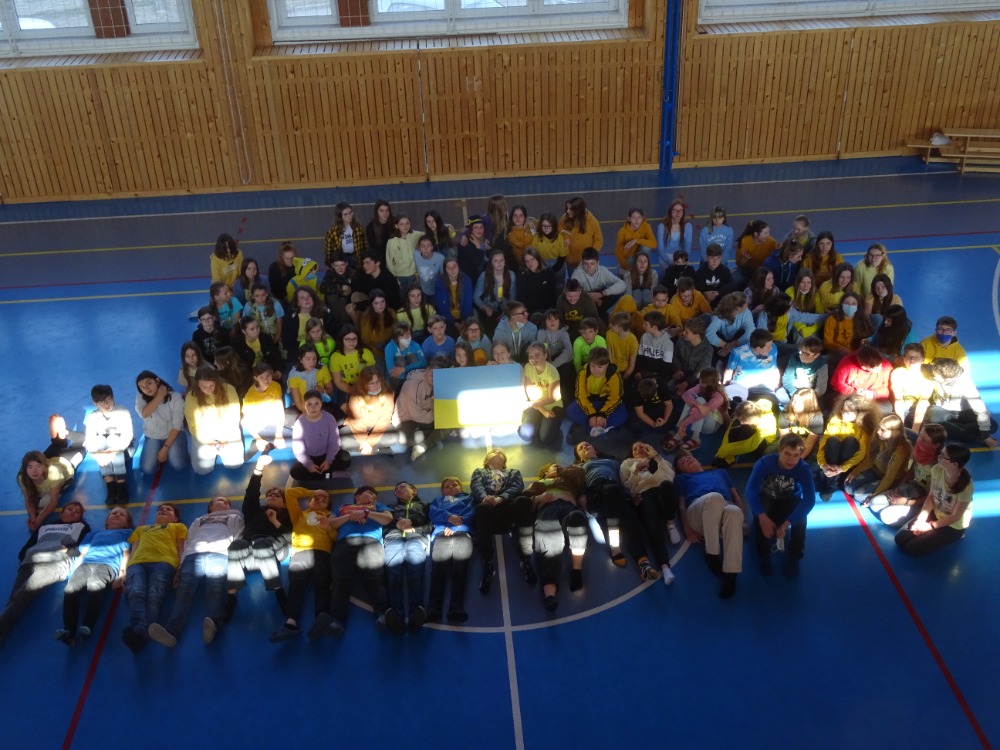 V pátek, dne 11. 3. náš žákovský parlament zorganizoval žlutomodrý den. Snažili jsme se nenásilnou formou vyjádřit svoje stanovisko a postoj k probíhajícímu válečnému konfliktu na Ukrajině a podpořit zdejší národ v boji proti ruské agresi. Nikde ve třídách se o válce nemluvilo, ale ušili jsme žákům žlutomodré stužky, které obdrželi při vstupu do školy. Zapojení bylo na