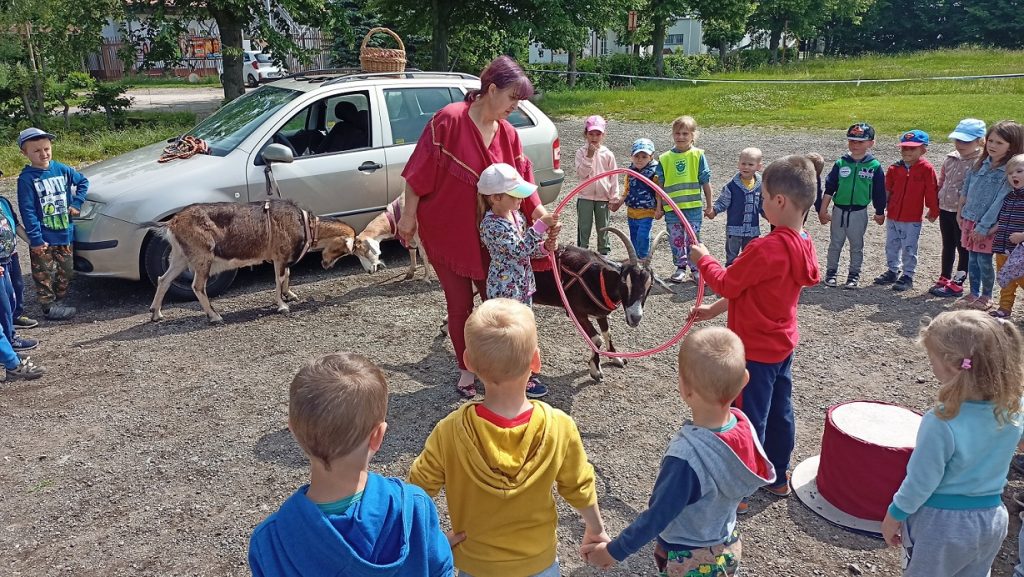 Dne 8. 6. 2022 náš navštívila paní Judová s neobvyklým programem – s vycvičenými kozami. Děti se seznámily, jak kozy domácí žijí, čím se živí a jaké mají vlastnosti. V zážitkové části vystoupení kozy předvedly různé kousky, pohybové básničky a tanečky, reakce na povely. Zajímavá byla i ukázka dojení. Na závěr se děti mohly s kozami pomazlit, zkusit jim