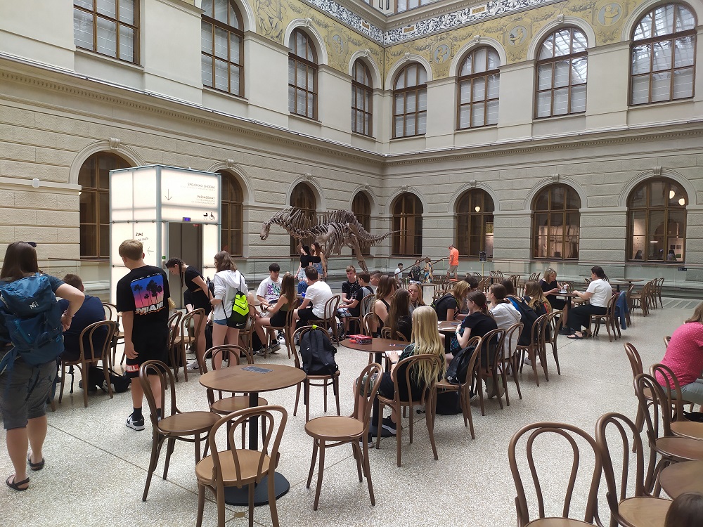Dne 26. června jsme se vydali vlakem do Národního muzea v Praze. Jako první nás zaujala nádherná architektura v novorenesančním stylu. V expozici Okna do pravěku jsme se dozvěděli, jak vypadal život na našem území před mnoha milióny let. Viděli jsme zkameněliny trilobitů, obřího amonita a krásné modely pravěkých zvířat. Další expozice, které jsme si