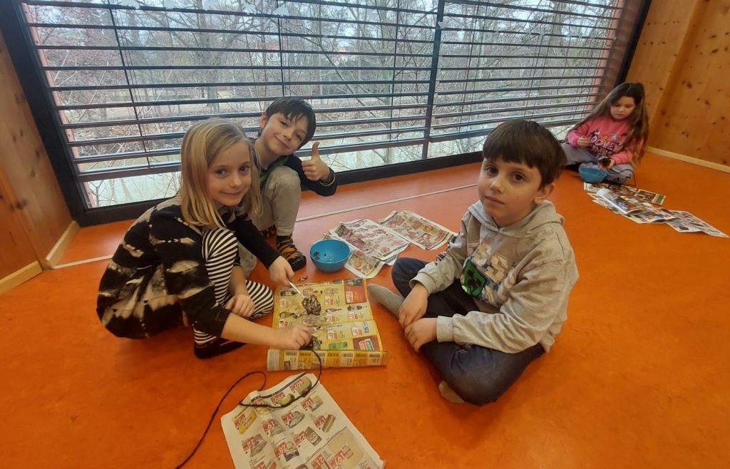 Dne 6.2. navštívili žáci školní družiny z prvního a druhého oddělení EKOCENTRUM PALETA. Děti ve skupinách vyráběly jeden z mnoha druhů krmítek – krmítko šiškové. Byly moc šikovní a tak si společně ztloukly i krmítko dřevěné. Vše si také odnesly do školy. Šičková krmítka jsme rozvěsili po okolí školy a dřevěné krmítko si děti nechaly na