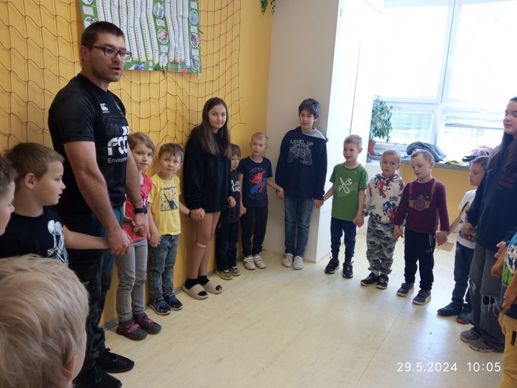 28. 5. 2024 naše Motýlky navštívil společně se žáky 5. třídy rodilý mluvčí Nicholas Peter Wood. Děti se nejdříve učily fráze u stolečku „stand up, sit down“ formou hry, na koberci opakovaly barvy a děti je hledaly po třídě, naučily se nová slovíčka – mořská zvířata a uspořádaly šnečí závody ve dvojicích.