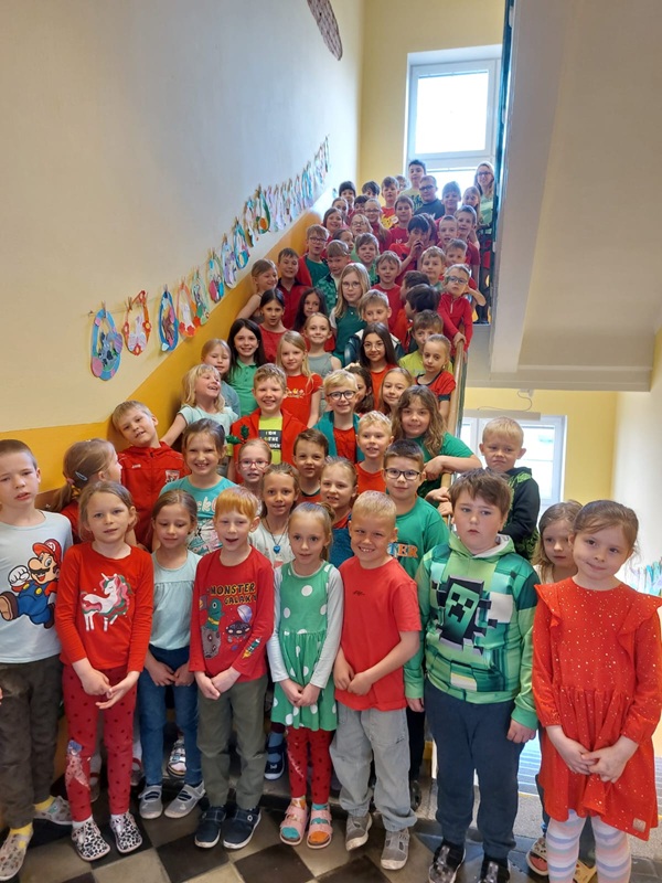 V týdnu před Velikonocemi jsme si připomněli, že Velikonoce jsou jarní svátky. Jaro nás konečně potěší svěžími pestrými barvami. Proto v pondělí přišly děti oblečené do červené a zelené, v úterý zářila ve škole žlutá a modrá barva a ve středu byl den nejpestřejší, neboť se sešly všechny možné barevné kombinace a vzory. Ve středu