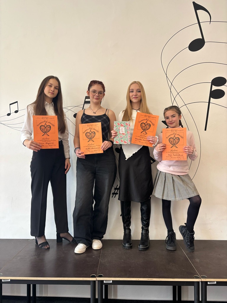 Ve středu 9. 4. 2025 se čtyři žákyně naší školy zúčastnily pěvecké soutěže Novopacký slavíček. Za 2. stupeň nás reprezentovaly Veronika Dobešová z IX. C, Tereza Strejcová z IX. B a Eliška Chvátalová z IX. A. Za 1. stupeň se přidala Ema Růžičková z V. A. V silné konkurenci se velmi dařilo Veronice Dobešové, která si vyzpívala krásné 3. místo