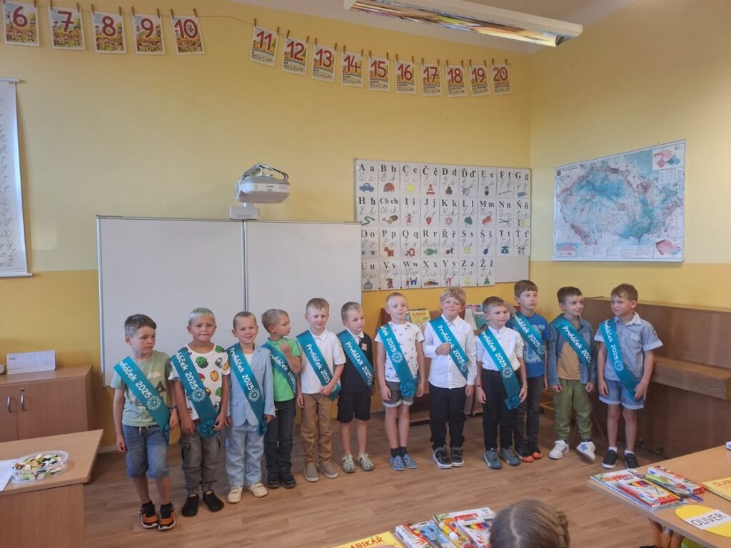 První školní den, 1. září 2025, se pro naše nové prvňáčky stal nezapomenutelným okamžikem. V doprovodu svých rodičů vstoupili poprvé do školních lavic a byli slavnostně přivítáni paní učitelkou, která se na své nové žáčky velmi těšila. K milému uvítání se připojila také paní ředitelka, která dětem i rodičům popřála mnoho úspěchů, radosti a krásných