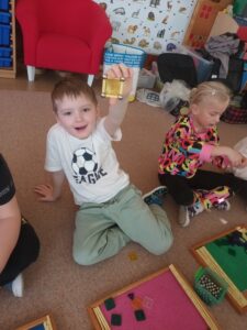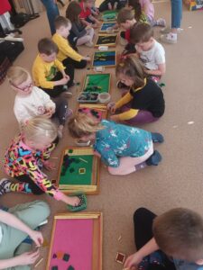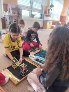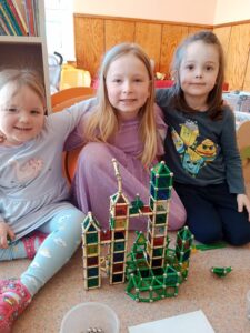 Děti si trénovaly jemnou motoriku díky magnetické stavebnici Geomag, se kterou k nám přijela paní Balvínová. Děti tuto stavebnici znají, avšak paní lektorka dětem ukázala, jak využít potenciál této stavebnice na maximum. Děti poté popustily uzdu své fantazii a vznikla tak mistrovská díla.