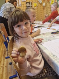 V rámci vzdělávací části se děti dozvěděly o původu brambor, jejich cestě do Evropy a významu v naší kuchyni. Celý projekt vyvrcholil společnou ochutnávkou bramborových šišek s mákem, které pro děti připravily paní vychovatelky. Dětem velice chutnalo a překvapení je potěšilo.