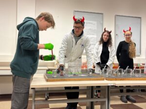 Dne 6. 12, 2024 se vybraní žáci osmých a devátých tříd zúčastnili akce Čertovské experimenty na Univerzitě Hradec Králové. Mohli si vyzkoušet pokusy z chemie, zábavné úlohy z matematiky a mikroskopování larev pakomárů.