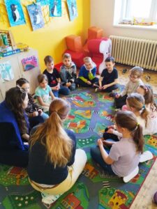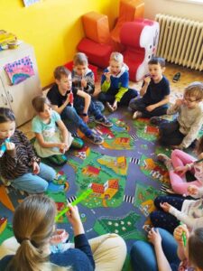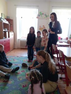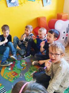 Ve čtvrtek 20.března 2025 navštívily studentky zubního lékařství třídy I.A a I.B, aby děti seznámily se správnou péči o dutinu ústní. Děti se dozvěděly o stavbě zoubku, že zuby potřebujeme také na komunikaci, kolik zubů máme jako malí a kolik jako dospělí. Jak se o zoubky máme správně starat, aby nám vydržely na celý život. Děti si přinesly svoje kartáčky, aby si vyzkoušely správnou techniku čištění.