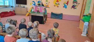 Dne 15. 4. 2024 přijela do MŠ Chlum paní Mgr. Eva Kelemenová z divadla „ Na cestě“ Liberec. Zahrála dětem loutkovou pohádku „Chytrá Horákyně“.