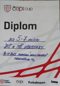 30. 11. 2023 jsme vyrazili ukázat, jak se hraje florbal ve Všestarech a hlavně navázat na velké úspěchy ve starších kategoriích. Dopravní spoje nám krásně navazovaly, a tak jsme přijeli přes Hradec Králové do krásné sportovní haly u Základní školy v Předměřicích nad Labem. Družstvo bylo ve složení Vojtěch Košťál (brankář), Matěj Částka, Tomáš Cibulka, Matyáš Dresler (kapitán), Adam Hora, Filip Kepert, Tomáš Volejník, Viktor Volf a náš benjamínek Ondřej Šafránek a kluci hráli velmi dobře. Vyhráli jsme všechny zápasy, až na jeden bohužel postupový, kdy jsme padli na nájezdy se ZŠ SNP, Hradec Králové 2:3. Porazili jsme ZŠ Sion 5:0, domácí ZŠ a MŠ Předměřice 2:1 a ZŠ a MŠ Svobodné Dvory také 5:0. Skupinu jsme vyhráli, ale i tak je to kruté, že jsme skončili na 5.-7.místě. Naši nejlepší střelci byli Dresler – 7 gólů, Cibulka 4 góly, Částka, Kepert a Volf dali po 1 gólu. Všem děkuji za předvedenou hru a hlavně, že jsme si to všichni užili ve zdraví a těšíme se na další získané zkušenosti.