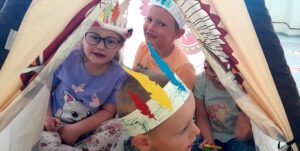 Ve čtvrtek 5. 6. 2025 si Veverky zahrály „Na indiány“. Cílem bylo seznámit děti s jinými kulturami, národnostmi a jejich zvyky.