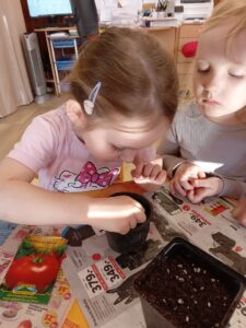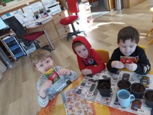 Koutek „Zahradníčci“ – s nastávajícím jarem si děti zasadily do hlíny semínka pažitky, řeřichy, hrášku, rajčat a papriky. Důkladně zalily a další dny sledovaly jejich malé mírně vykukující rostlinky. Už teď se moc těší, až ochutnají jejich plody ke svačince.
