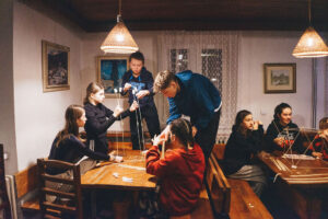 Sněhové podmínky byly víc než dobré, tak jsme mohli vyrážet na lyže každý den. Se zájemci jsme se dokonce vydali na svah i ve středu večer, mělo to velký úspěch, atmosféra nočního lyžování žáky nadchla. Ve čtvrtek jsme navštívili i větší středisko Bubákov-Herlíkovice. Večery jsme trávili společnými hrami, nechyběly ani přednášky např. o bezpečnosti na horách nebo historii lyžování.