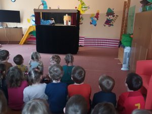 Maňáskové divadlo ŠtenberkMŠ Chlum / 7. 2. 2024 Dne 6.2. k nám zavítalo loutkové divadlo se třemi pohádkami ,,Hrnečku vař“, „O Smolíčkovi“ a „O zlaté rybce“.