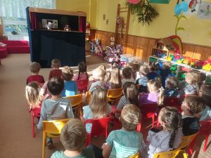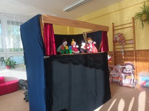 Za dětmi přijelo Maňáskové divadlo ze Šternberka. Děti zhlédly pohádky „O Šípkové Růžence“, „O pejskovi a kočičce“ a „Zajíc, liška a kohout“. Pohádky byly proloženy známými písněmi, které si děti zazpívaly společně s maňásky.