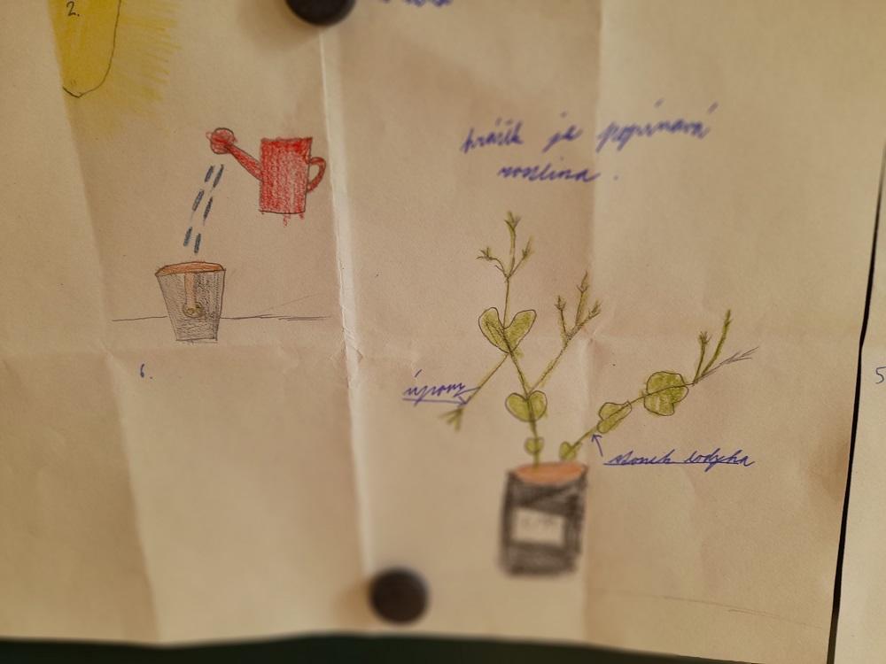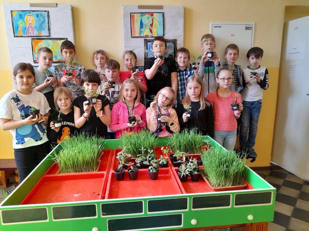 Žáci III. třídy si v rámci mezipředmětových vztahů ověřovali teoretické znalosti z Prvouky při praktických pokusech v Pracovním vyučování. Znalosti o podmínkách růstu a vývoje rostlin si vyzkoušeli při setí semen hrachu. Svůj zasazený hrášek průběžně sledovali, zaznamenávali změny při růstu – první lístky, výšku rostliny… Každý u své rostliny pozoroval otáčení za světlem, upevňování úpony. Děti práce bavila, se zájmem si vyzkoušely jednoduché pěstitelské činnosti a získané dovednosti mohou vyzkoušet i doma na své zahrádce.