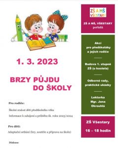 6. 02. 2023INFORMACE Z MŠ CHLUM Z důvodu nemocnosti v MŠ se karneval přesouvá ze středy 8. 2. 2023 na středu 22. 2. 2023. Děkujeme za… MŠ Chlum