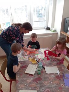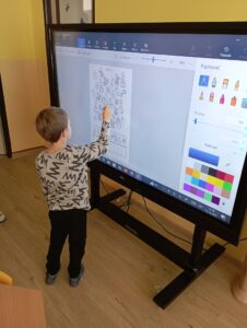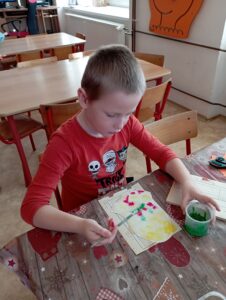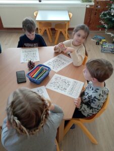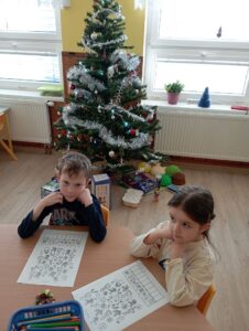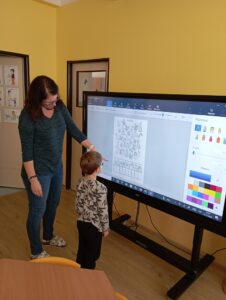 Děti nám ukázaly, jak pracují s pomocí interaktivní tabule a pracovních listů. Vyráběly vánoční dekorace. Pracovaly se zájmem a práce se jim dařila. Činnosti byly zaměřené na brzký příchod Vánoc, na které se děti už nemohou dočkat. Moc se těší na Ježíška, ale také na návštěvu školy při akci pro předškoláky „Brzy půjdu do školy“, která se koná 6. ledna 2026 a zápis do první třídy, který se už blíží a proběhne 6. února 2026. Na děti se už moc těšíme a přislíbily účast i paní učitelky, které se zájmem sledují pokroky dětí.