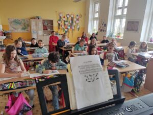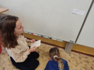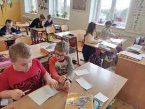 Olympijské téma nás provázelo i při výuce českého jazyka. Děti si vyzkoušely běhací diktát s olympijskou tematikou, při kterém si procvičily psaní i/y. Nakonec pracovaly ve skupinách, kde ze zadaných slov tvořily vlastní věty.
