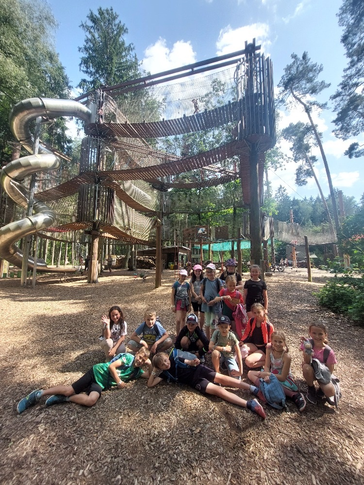 V pátek 20. června jsme se se 3. oddělením školní družiny vydali na výlet do Parku Na Větvi v Hradci Králové. Děti navštívily soustavu síťových hřišť zavěšených v korunách stromů, propojených s 3D bludištěm. Hřiště obsahovalo mnoho zábavných prvků, které prověřily jejich motorické dovednosti. Děti si výlet i slunné počasí velmi užily.