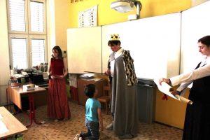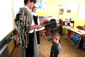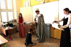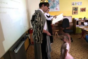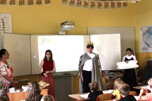 V pátek 14. června 2024 proběhlo slavnostní pasování prvňáčků na čtenáře. Král Jan I. se svojí družinou přijel osobně zjistit, zda noví adepti jsou připraveni na pasování čtenářů. Všichni žáci ukázali, že si s písmenky a slovy dokážou poradit. Po slibu čtenářů je král pasoval na rytíře a rytířky řádu čtenářského. Každý žák dostal pamětní list a knížku od spisovatelky Zuzany Pospíšilové Kouzelné brýle, která byla vydána speciálně pro žáky 1. tříd na podporu čtenářství. Tak snad se bude čtenářům líbit. Pochvalu si zaslouží žáci IX. B, kteří pomohli s přípravou a realizací celé akce.