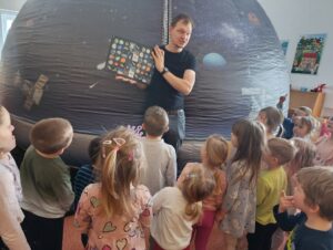Ve středu 17.2.2026 děti shlédly v promítací kupoli příběh “ Polaris“ o vesmírném putování s medvědem a tučňákem. Tato kupole nabízí unikátní zážitek s nejmodernější technologií, která umožňuje realistické a poutavé promítání naučných filmů o vesmíru.