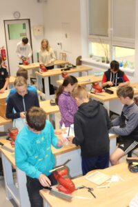 V nové dílně se to pracuje! Žáci šestých tříd v prvním pololetí vyráběli ze dřeva naviják na šňůru, v druhém pololetí měli za úkol vyrobit podložku, která bude určena do kuchyně pod horký hrnec nebo jako podložka pod květináč. Přesnost měření, řezání a lepení, pečlivost a přiměřené tempo práce některým dělalo menší problém, ale všichni práci stihli dokončit v daném čase. Svým výrobkem tak mohou potěšit své blízké. V měsíci květnu připravili šesťáci pro své spolužáky z ostatních tříd sazenice dýní, abychom na podzim měli zase z čeho vyrábět. Tak snad už Vám dýně na zahradě rostou! Dýňové slavnosti se budou konat opět v říjnu.