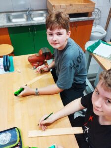 V hodinách pracovní výchovy se chlapci ze sedmých tříd pustili do výroby dřevěných obraceček na palačinky. Pracovali poprvé na nových strojích, které škola nedávno pořídila. I když to pro mnohé byla úplná novinka, rychle si práci s nářadím osvojili. Nejprve si pečlivě nakreslili návrh a vybrali vhodné kusy dřeva. Poté začali řezat, brousit a tvarovat jednotlivé části obraceček. Výsledky jejich snažení překvapily i je samotné. Chlapci se již těší, až si je budou moci vyzkoušet v praxi.