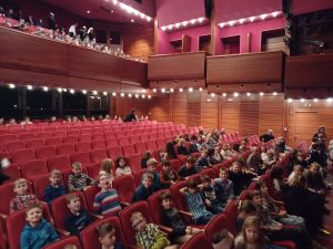 V pondělí 4. března vyrazili žáci z celého 1. stupně do Klicperova divadla v HK na představení Čtyřlístek. Událost to pro většinu byla výjimečná, mnoho žáčků navštívilo hradecké divadlo poprvé a téměř všichni byli slavnostně oblečeni. Představení bylo vtipné, svižné a všichni jsme si ho vychutnali plnými doušky. Vřele Čtyřlístek doporučujeme a věříme, že se do Klicperova divadla opět podíváme.