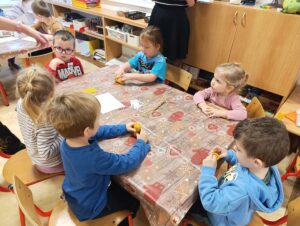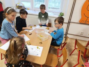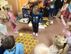 V pondělí 15.12.2025 k nám zavítala paní Šindelářová s enviromentálním projektem zaměřeným na poznání pozoruhodného života včel a zajímavou práci včelaře. Děti se dozvěděly, jak včelky vyrůstají a žijí, co dělají v zimě, jak vlastně včelky vytváří včelí vosk, k čemu je dobrý, jak se zpracovává a hlavně si vyrobily svíčku z pravého včelího vosku.
