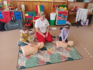 Projekt „ZACHRAŇ KAMARÁDA“ s méďou Bolístkou – školení první pomoci, děti se naučily, jak přivolat pomoc, jak komunikovat s dispečery na RZS. Zkoušely resuscitaci na figurínách, základy obvazové techniky – při krvácení, popáleninách, odřeninách, pomoc při dušení či kolapsu a mnoho dalšího. Vše probíhalo zábavnou formou, děti si vyzkoušely různé zdravotní pomůcky, diagnostické přístroje a na konci školení dostaly i drobný dárek.