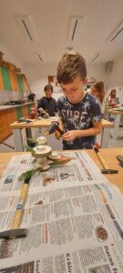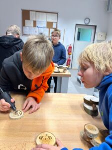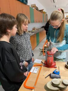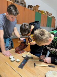 Součástí programu bylo také zdobení dřevěných dílů, při kterém děti využívaly vypalovačky a ozdobily své svícny podle vlastní fantazie. Všichni mohli vyzkoušet různé truhlářské dovednosti a vytvořit si originální výrobek.