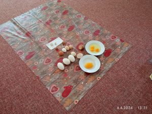 V rámci tématu se děti z MŠ Chlum seznámily s různými druhy vajec. Poté navštívily místní chovatelku ptactva, kde sledovaly fáze vývoje od zárodku po vylíhnutí ptačího jedince.