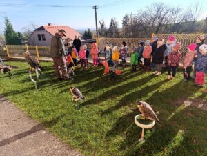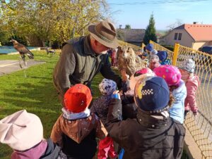 V pátek 6. 11. 2025 děti na školní zahradě zhlédly různé dravce. Dozvěděly se mnoho nového o jejich životě a mohly si je i pohladit.