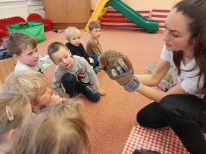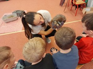 12. ledna nás navštívila paní ze Záchranné stanice Jaroměř, která měla pro děti připravený naučný program.  Přivezla s sebou na ukázku i ježka a netopýra, které si děti mohly postupně prohlédnout.