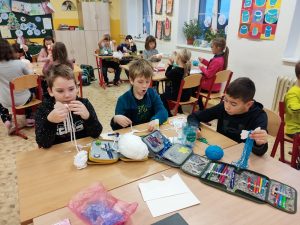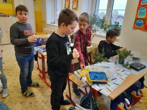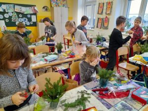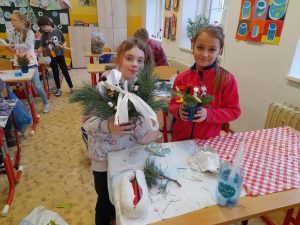 Poslední dva dny v tomto roce si děti na prvním stupni zkrátily čekání na Vánoce tvořívými aktivitami. Proběhly vánoční dílny, kde byly promíchané děti z více tříd, starší děti tak mohly pomáhat mladším s výrobou vánoční ozdoby, andílka a společně si zahrály hry. Děti si také vytvořily vánoční svícny, které si krásně nazdobily a vánoční přání pro své blízké. Poslední den proběhly besídky, děti zpívaly koledy a předaly si drobné dárečky. Vzájemně si popřály to, co my přejeme i Vám-krásné Vánoce a v novém roce hlavně zdraví.