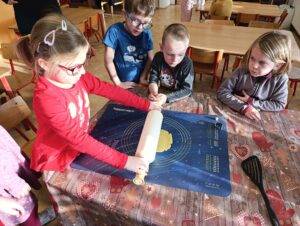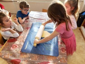 V adventním čase se peče cukroví i děti ze Soviček tvořily z lineckého těsta kytičky a zvonečky nejen pro sebe , ale i pro svoje mladší kamarády. Moc se jim povedly a chutnaly.