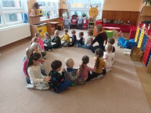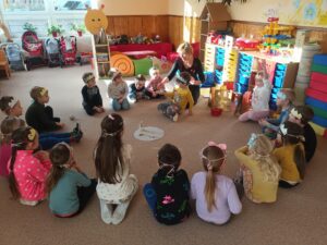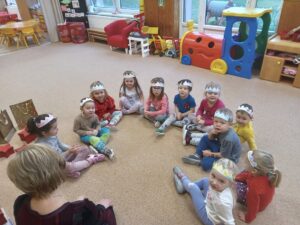 Dne 11. 12. 2024 nás navštívila paní Stránská. Vyprávěla dětem „Vánoční příběh“ o tom jakou tradici Vánoce mají, jejich vznik. Společně si zazpívali píseň „Pásli ovce valaši“. Děti tančily, vyráběly koruny a své zážitky nakreslily.