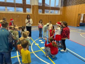 13. 12. 2024 Akce v rámci KOOPERACE MŠ a ZŠ Všestary nazvaná: „Vánoční sportovní den“. Zúčastnily se děti 5. třídy ZŠ Všestary a předškolní děti MŠ Všestary – Motýlci. Velké děti připravily pro své malé kamarády akci plnou zábavy, sportu, soutěží a přátelské podpory.