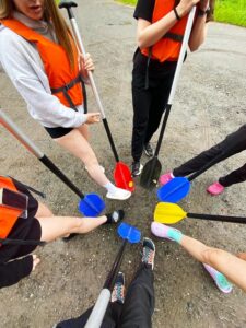 Po doplutí na cílové místo ale výlet ještě neskončil. Čekala je druhá část dobrodružství – zpáteční cesta na koloběžkách. Trasa vedla malebnou krajinou, kde si prověřili fyzičku. Když už to vypadalo, že je vše za nimi, přišlo překvapení – závěrečný běh na vlak. Sprint s batohy nebyl nic jednoduchého, ale s úsměvem a včas všichni dorazili na nástupiště.