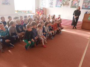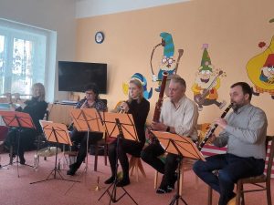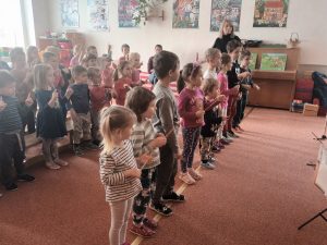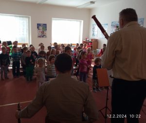 V pondělí 12.2.2024 nás v MŠ navštívilo dechové kvinteto z Filharmonie Hradec Králové s hudební pohádkou “ Jak šli muzikanti do světa“. Seznámili děti s netradičními hudebními nástroji a naučili je novou písničku. Děti vytleskávaly rytmus, aktivně se zapojovaly do představení a na závěr si zahrály “ Na dirigenty“.