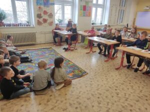 Setkání proběhlo v příjemné a přátelské atmosféře. Prvňáčci pozorně naslouchali a občas se zvědavě ptali na to, co je v příběhu čeká dál. Společné chvíle nad knihou byly krásným zpestřením školních dní a povzbuzením k dalšímu čtení.