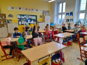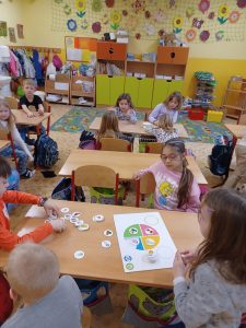 Hned na začátku nového pololetí nás navštívila paní Drobná se zábavně poučným programem „Zdravá 5“. Děti si zopakovaly potraviny, které jsou zdravé a které nezdravé, odpověděly na mnoho zajímavých otázek na téma naše tělo a stravování. Dozvěděly se, jak velmi důležitá je správná strava pro zdraví, jak ovlivňuje naši energii a náladu po celý den. Děti měly poté ve skupinách za úkol připravit zdravou svačinu pro paní učitelky. Za všechny úkoly získávaly body a nakonec byly všechny skupiny pochváleny za pěknou a pečlivou práci.